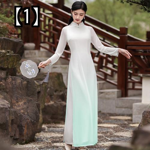 アオザイ ワンピース ロング チャイナドレス 衣装 レディース おしゃれ ファッション 春夏 コスプレ グラデーション 中国風 ホワイト 長袖