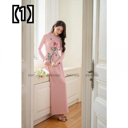 アオザイ ワンピース ロング チャイナドレス 衣装 レディース おしゃれ ファッション 春夏 コスプレ 中国風 レトロ ピンク ホワイト ブルー 長袖